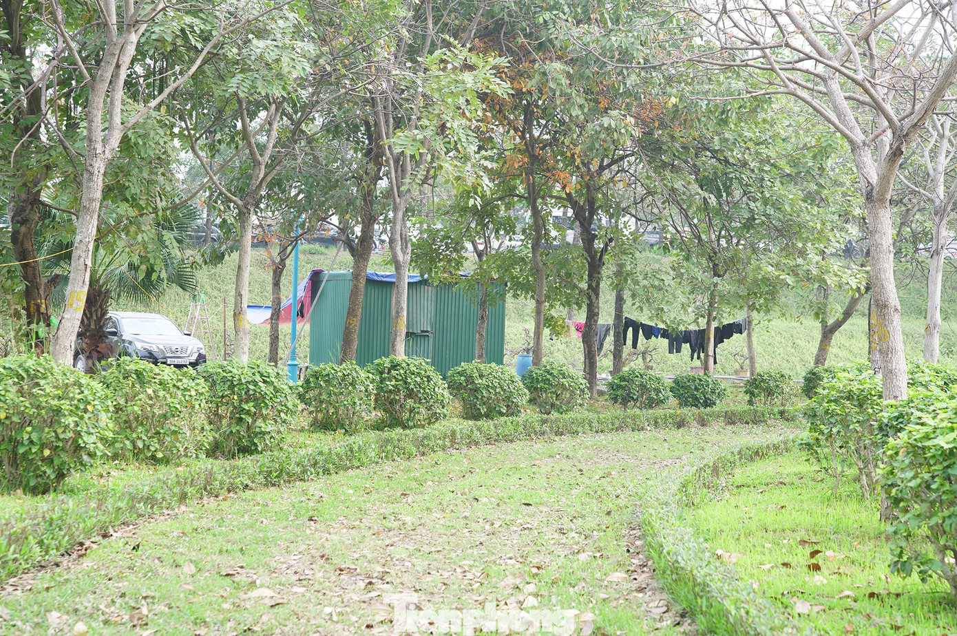 Từng được kỳ vọng là điểm nhấn dưới chân cầu Nhật Tân, vườn hoa Nhật Tân (phường Phú Thượng) nay xuống cấp nghiêm trọng. “Lá phổi xanh” này đang trở thành nơi tập kết rác, xe tải, xuất hiện lán trại trái phép và nhiều hoạt động thiếu gọn gàng.