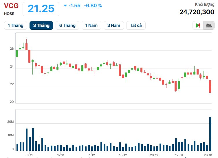 Trong phiên giao dịch ngày hôm nay, đã có hơn 24,7 triệu cổ phiếu VCG được giao dịch, gấp 5,6 lần phiên giao dịch ngày 23/1.