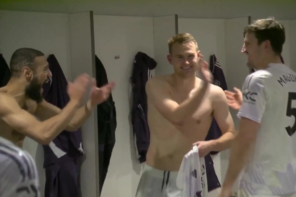 Sau trận, khi tiến vào phòng thay đồ, Maguire nhận được những tràng pháo tay, tiếng hò reo từ đồng đội và cả cái ôm của đội trưởng Bruno Fernandes.